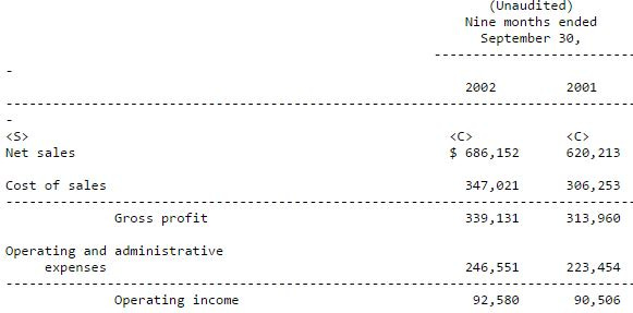 In addition to 08-09, I also went back and glanced at some old filings from the 2001-02 recession. Fastenal was a much smaller company at this time and was expanding its store footprint at a much faster rate, so growth slowed but did not decline during this particular economic contraction. I read through the 10-Q from October 2002 and noticed that sales increased 10.6% in the first 9 months of 2002 vs 2001, and earnings were up 1.9%. Growth slowed from previous years, but remained positive. However, in the 2002 10-Q I noticed that although sales grew, it was largely due to volume increases (thanks in large part to growth in the number of stores).