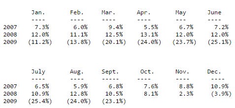 Here is the month by month growth numbers:
