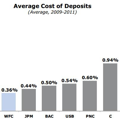 One thing that Buffett often says that I think gets overlooked is that in businesses such as banking (or commodity businesses), the company with the lowest costs wins in the end, and Wells Fargo has the lowest costs: