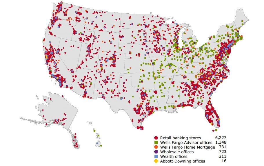 It’s tough to compete with an organization that can put up a map like this… But even if you disregard the economies of scale that WFC (and other large banks) has over small banks, the profitability ratios are far better at WFC than probably 95% or more of the community banks.